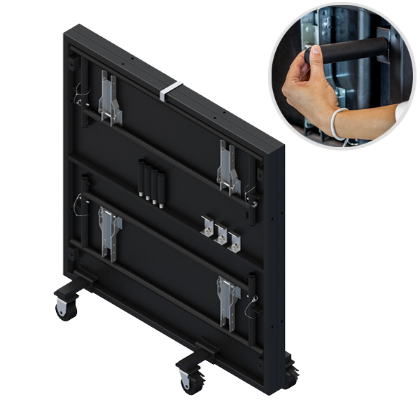 The EziFold™ Slim mobile folding stage system by Staging101 comes with a unique and revolutionary, slim, frameless wheel base design meaning modules have a compact storage footprint and can be moved and installed with ease. Simply roll the module out of storage and into position, select the desired leg height, fold down the platforms and you’re ready to go.