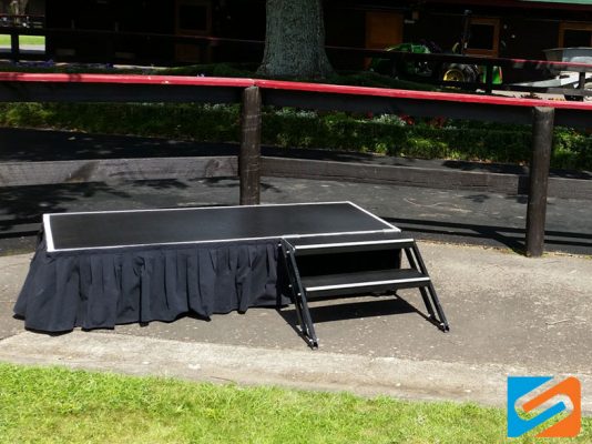 -Legs:Staging 101™ Choir riser legs are built into the underside of each platform and fold out like a trestle table and lock in place. Adjustable feet allow for 15mm of levelling for uneven surfaces.
