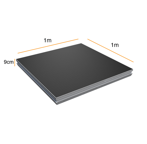 The Phantom™ 1x1m stage platform is your portable, event staging solution. Constructed from lightweight aluminium extrusions and a plywood deck to create a 1mx1mx90mm modular stage piece. Their versatility makes them perfect for creating dynamic performance spaces, catwalks for fashion shows, drum risers, tribunes or conference podiums or for creating extensions to an existing, built in stage. The plywood is European Birch and is weather sealed by a Black, phenolic, anti slip, industrial finish.